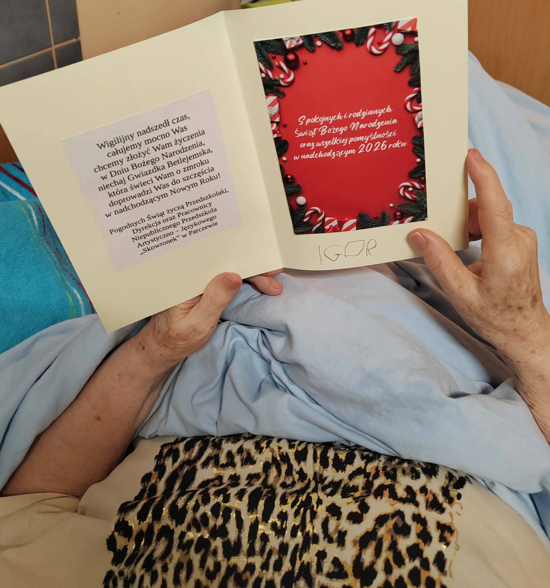 „Kartka dla Seniora” – przygotowanie kartek Bożonarodzeniowych i przekazanie ich podopiecznym Zakładu Opiekuńczo – Leczniczego w Tulnikach